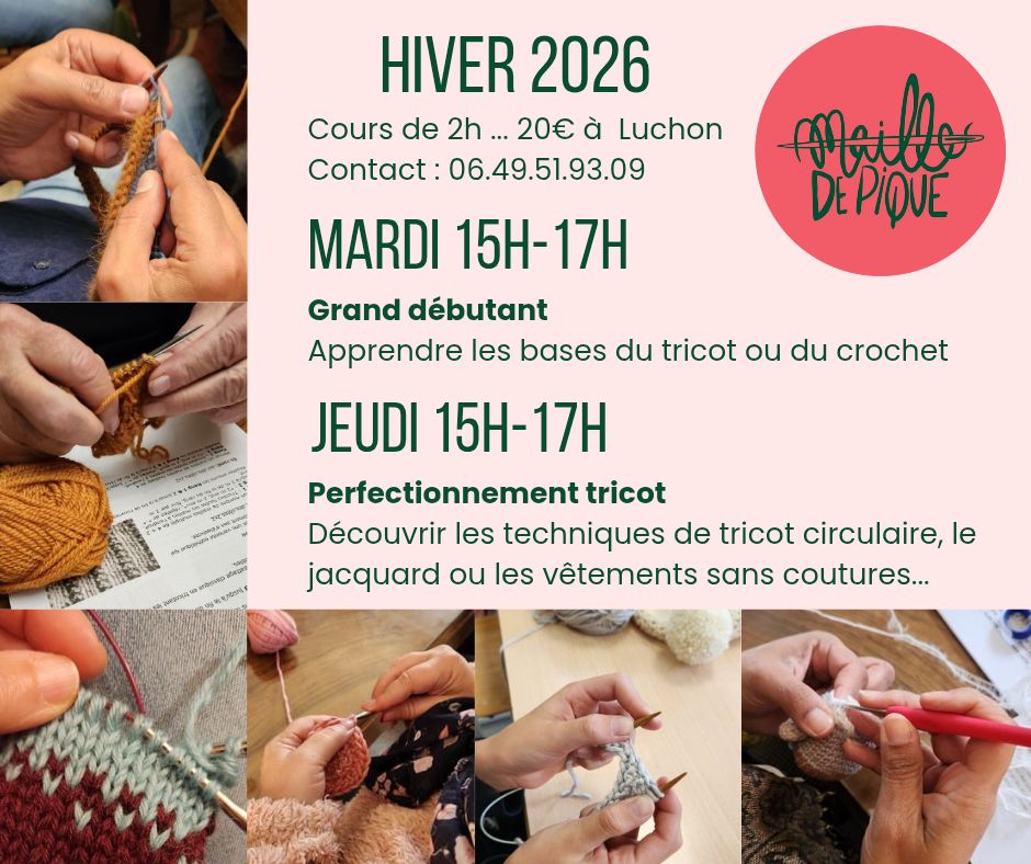- Intervenante pour Atelier d’initiation au tricot à la MJC de Bagnères de Luchon en 2020