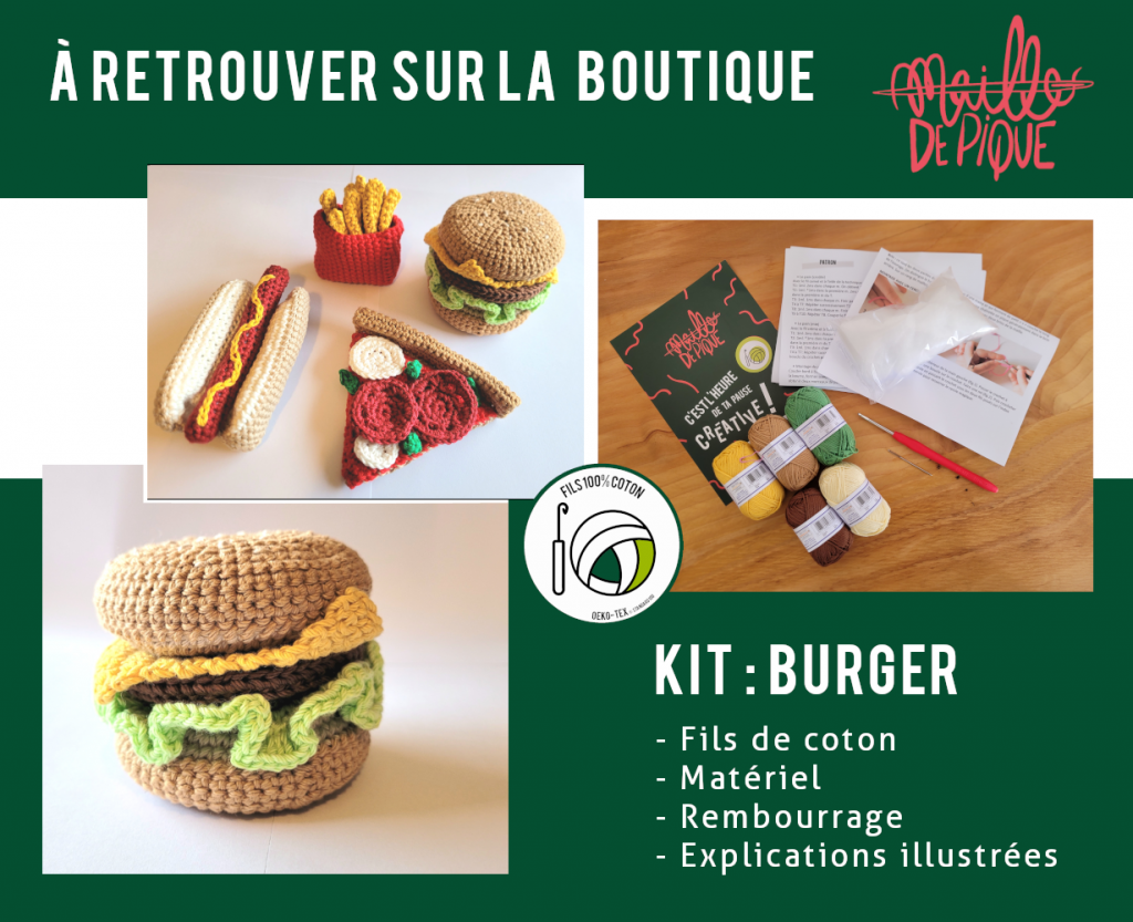 On peut, passer un fil de bas en haut pour écraser un peu le hamburger et obtenir un élément d’une seule pièce. Personnellement, je préfère le laisser démontable et modulable mais c’est au goût de chacun.